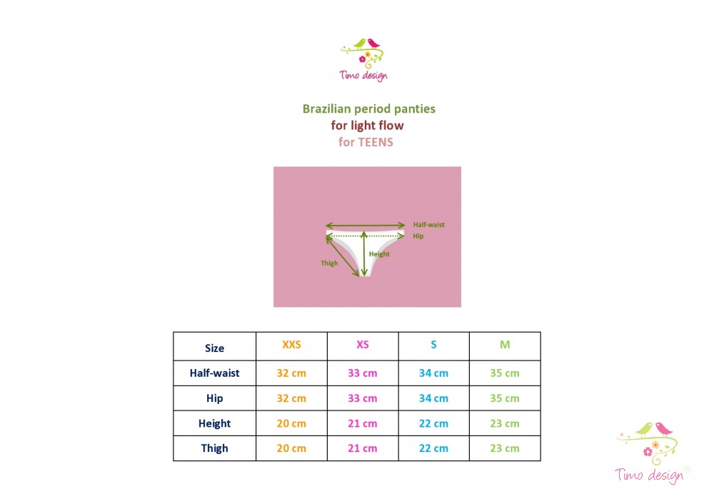 Menstruációs bugyi, enyhe vérzéshez, brazil bugyi fazonban. A középső nedvszívó liocell réteg* 20 cm-en fut végig, vagyis maga a bugyi olyan, mintha egy 20 cm-es betét lenne belevarrva, így kényelmes és szinte el is feledkezhetsz arról, hogy épp menstruálsz.