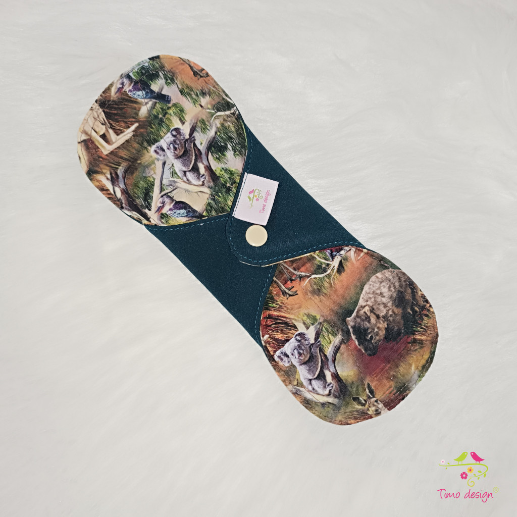 24 cm cloth pad with "Australian animals" pattern for moderate to heavy flow