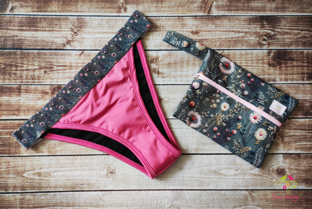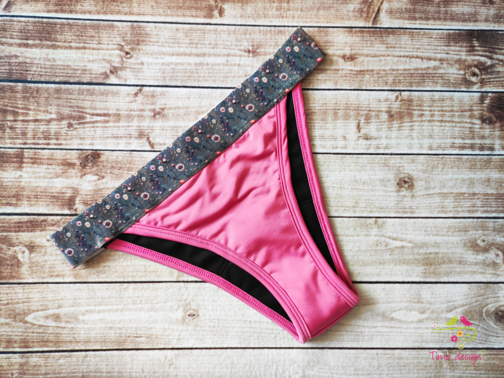 Fuxia brazilian period swimwear, bikini bottom with flower patterned waistband