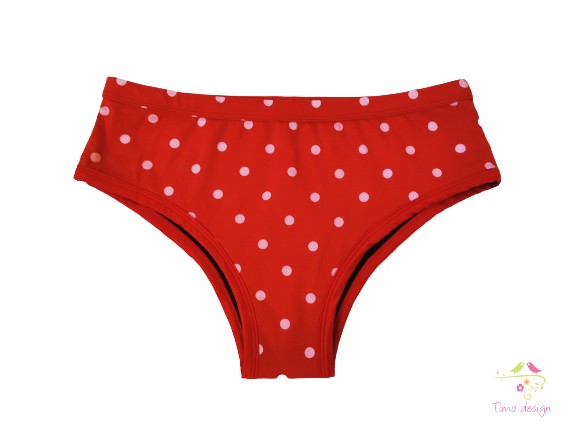 Red period panties for moderate flow with white polka dots