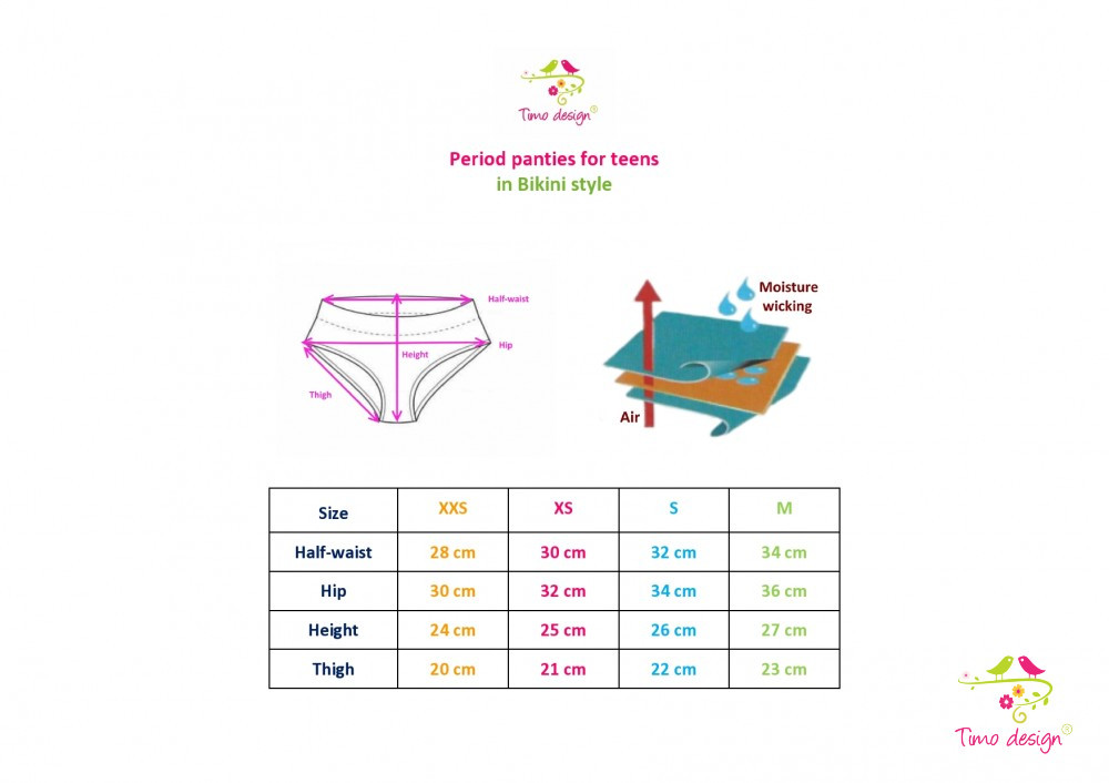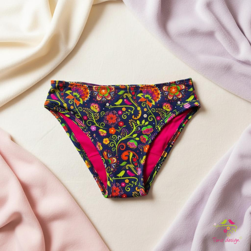 Teen period panties for heavy flow, in bikini style with Timo design unique pattern