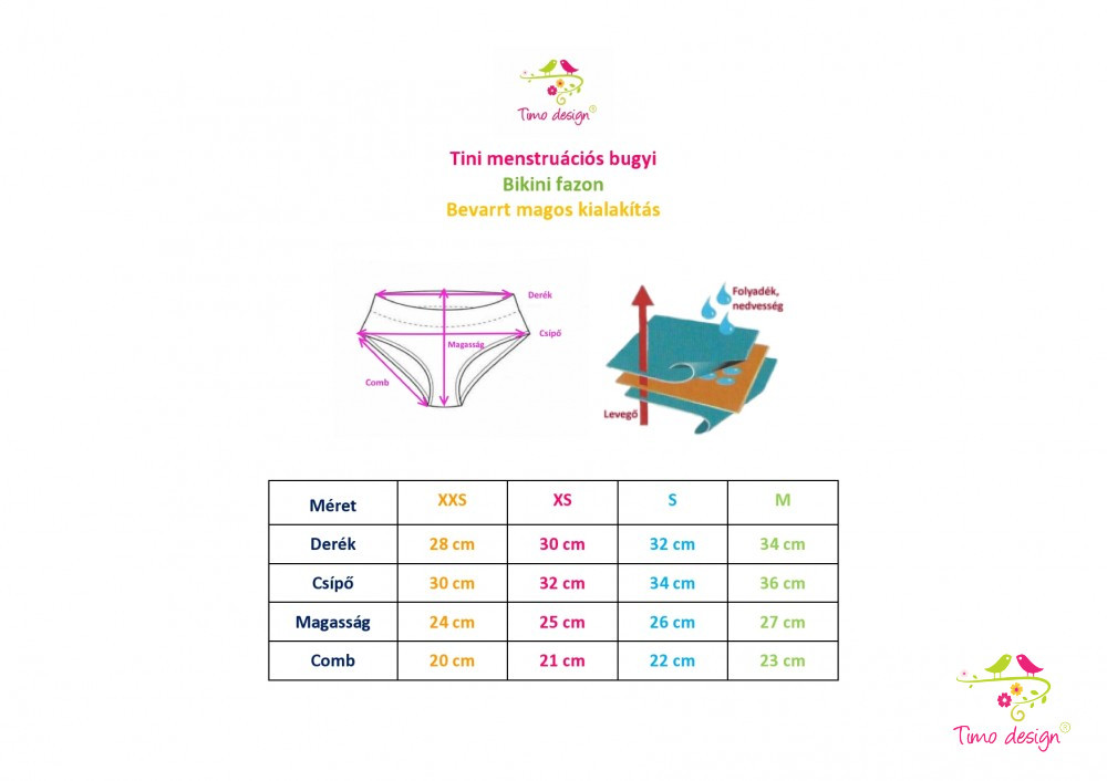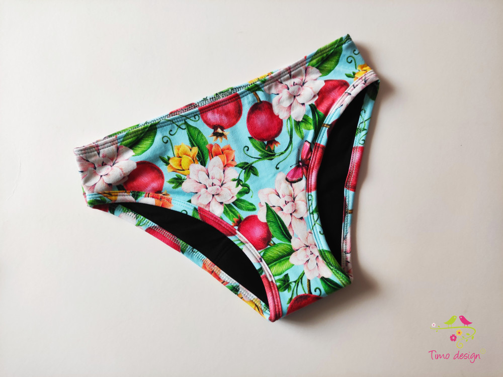 Teen period panties for heavy flow, in bikini style with Timo design unique pattern