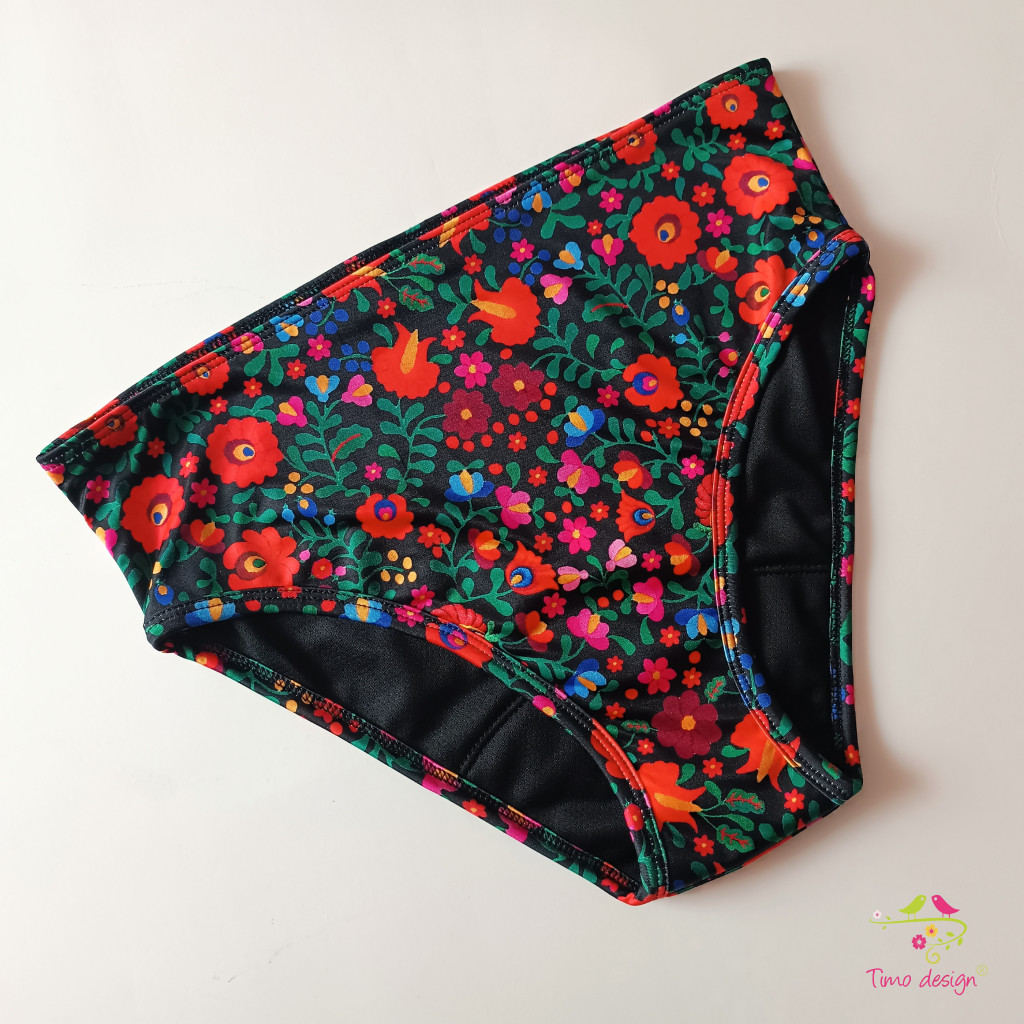 Middle waist period swimwear, bikini bottomwith Hungarian folk art pattern