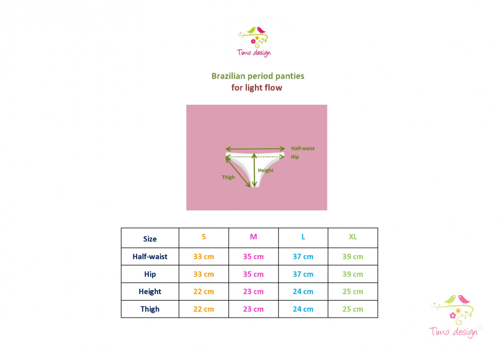 Tisztasági bugyi brazil bugyi fazonban. A belső, nedvszívó és nedvességzáró tulajdonságokkal rendelkező réteg kb. 21 cm hosszan fut végig, így maga a bugyi olyan, mintha egy 21 cm-es vékony tisztasági betét lenne belevarrva. Sőt a bugyi használatával a környezetért is tehetsz, mivel mosható és többször is használható, így könnyen elindulhatsz a zero waste életmód irányába!