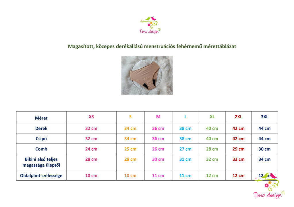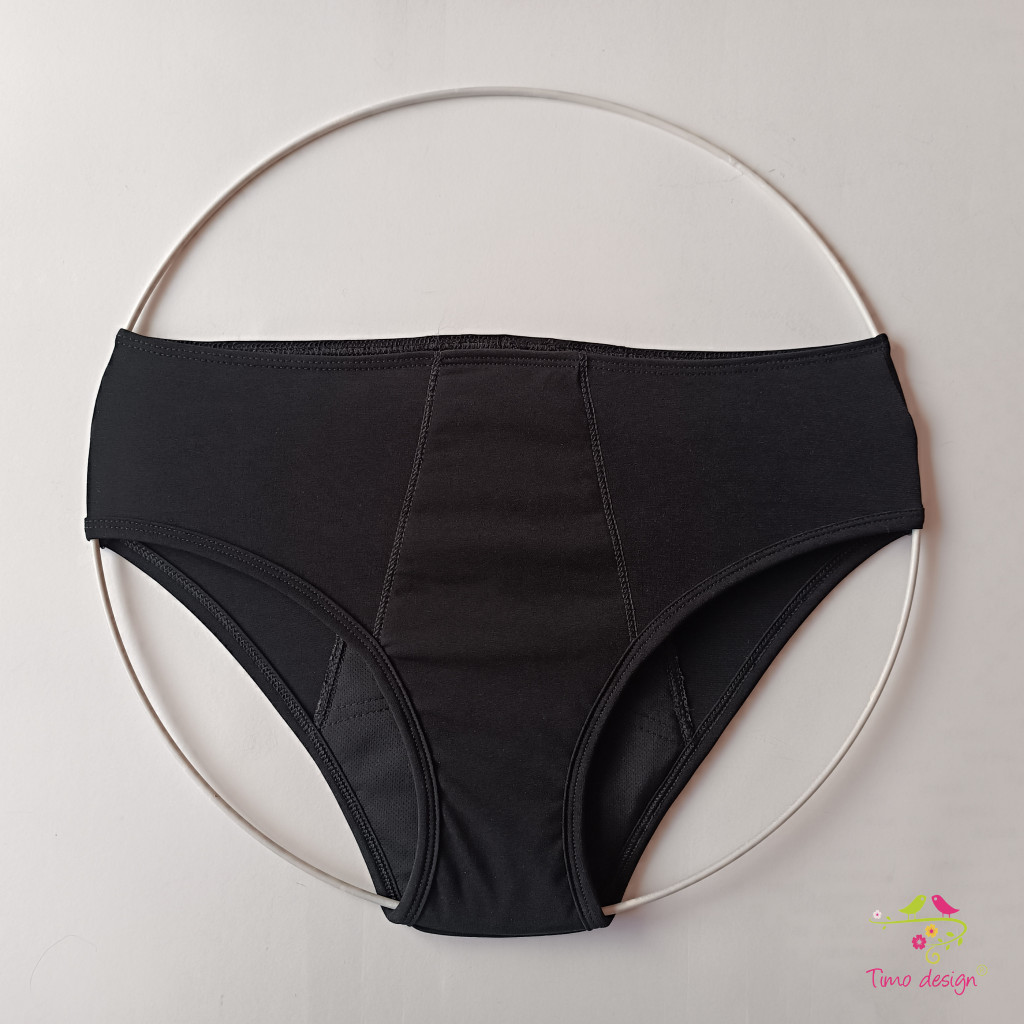 Közepesen magasított derekú, bikini fazonú menstruációs bugyival. Kifejezetten azok hölgyek számára terveztük, akik intenzív vérzéssel rendelkeznek, és egy igazán megbízható megoldást keresnek erős vérzéshez vagy éjszakai alváshoz.