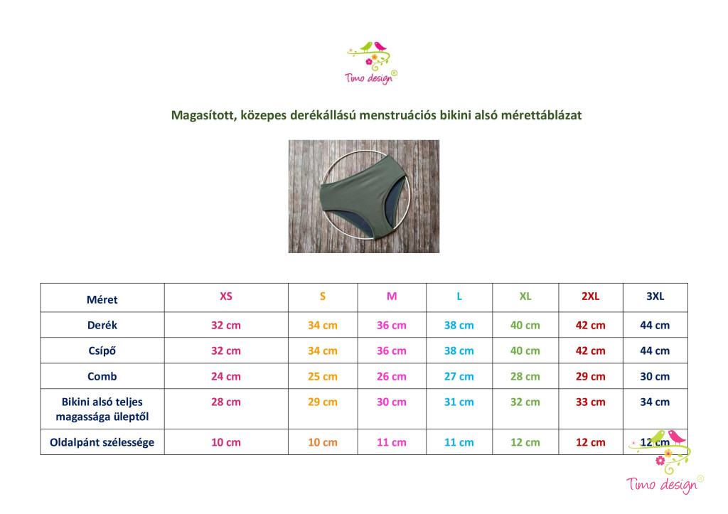 A Timo design® menstruációs fürdőruha alsó, fürdőbugyi használatával zavartalanul élvezheted a tengerparton vagy a medencében töltött perceket a menstruációd ideje alatt. Enyhe / közepes erősségű vérzés esetén a menstruációs fürdőruha alsót önmagában is viselheted. Erősebb vérzés esetén viszont javasoljuk kiegészítő védelemként intimkehely használatát.